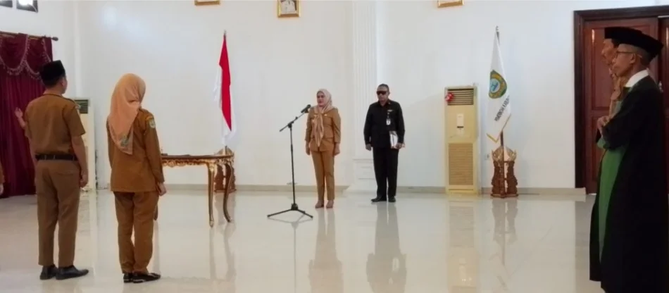 De’Link News.com, KEPSULA — Bupati Kabupaten Kepulauan Sula, Fifian Adeningsi Mus melantik enam orang auditor baru pada Inspektorat Daerah setempat. mereka yang dilantik adalah Abdul Khalik Hidayat, Dewi Sangadji, Sitti Suhartina, Adrian Abunaha, Marlon Frans Patty dan Ismail Yusuf. Prosesi pelantikan berlangsung di Aula Istana Daerah Dad Hia Ted Sua di Desa Fagudu, Selasa (11/11/2025).