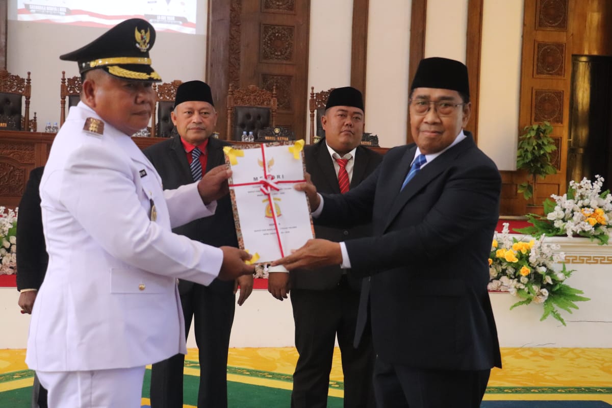 De’Link News, TALIABU — DPRD kabupaten Pulau Taliabu menggelar rapat paripurna khusus untuk serah terima jabatan bupati dan wakil bupati dan paripurna penyampaian visi dan misi bupati dan wakil bupati periode 2025-2030, Kamis (12/6/2025). Paripurna ini merupakan bagian dari proses transisi kepemimpinan setelah pelantikan kepala daerah terpilih.